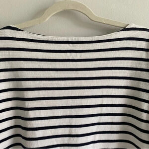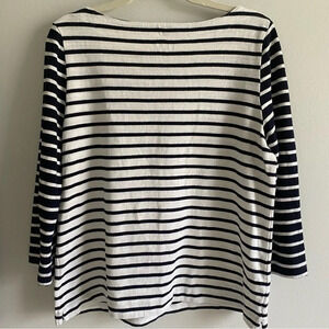 LOFT Striped Coastal Navy and Cream Boatneck 3/4 Sleeve Knit Sweater Top Size L