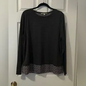 LOFT Sweater - dark grey/floral print - round neck - fabric combo top - lightweight back blouse material - layered look - flowy - 22” inches pit to pit - 27” inches length - some slight piling - excellent preloved condition