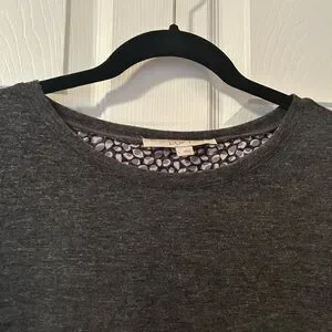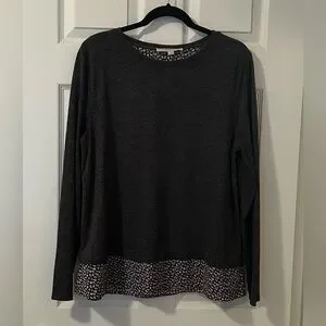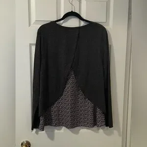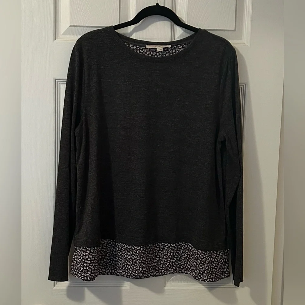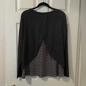 LOFT Sweater - dark grey/floral print - round neck - fabric combo top - lightweight back blouse material - layered look - flowy - 22” inches pit to pit - 27” inches length - some slight piling - excellent preloved condition