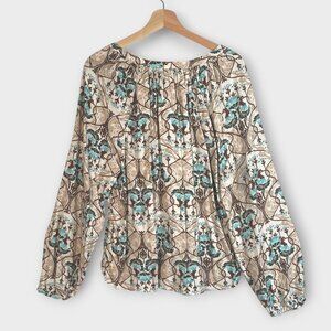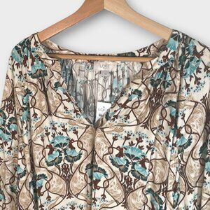 LOFT V-neck Popover BlouseTop LARGE Eclectic Boho Earth Tone Teal Accent NEW