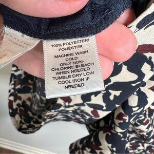 LOFT Womens Size 2 Navy Blue Burgundy Cream Floral Long Sleeve Tie Neck Romper