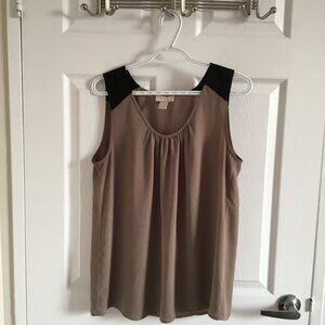 LOFT Women’s Sleeveless Top Blouse – Taupe with Black Shoulder Detail Size M