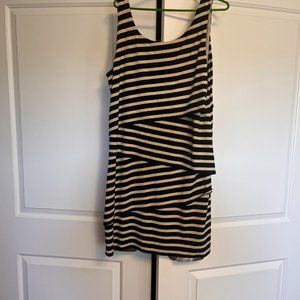 Chic LOFT women’s striped dress from the late 2010s, featuring classic horizontal stripes in black and cream (light yellow tint).