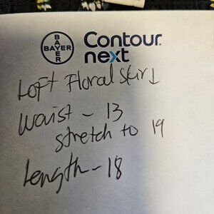stretch waist, flowy and lined no rips, in perfect condition waist flat 13 upto 19 length 18 clean, pet free, smoke free home