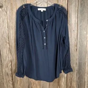LOFT Navy Eyelet Cutout Long Sleeve Blouse Features: