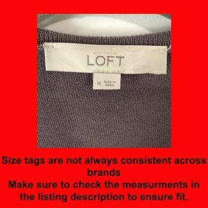 • Tag Size: M. Approximate measurements taken lying flat: Bust: 18”/Waist: 17”/Length from Shoulder: 22”/Sleeve Length: 17.5”