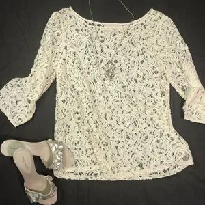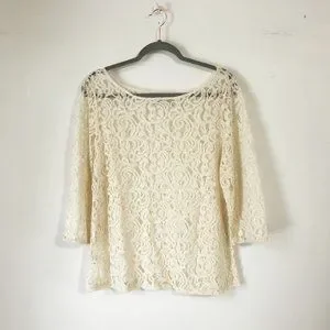 • Tag Size: L. Approximate measurements taken lying flat: Bust 20”/Waist 18.5”/Length from Shoulder 25”/Sleeve Length 10”