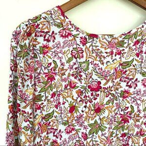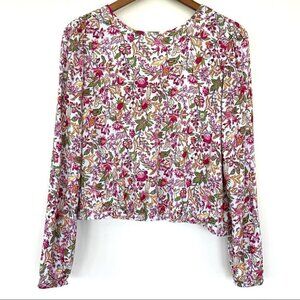 LOFT floral print top with long sleeves and v-back.