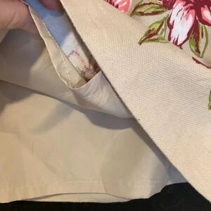 Floral lined skirt with side zipper. Tan color with white, pink and dark purple floral. Fabric has stretch. In immaculate condition.