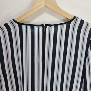 Fabulous black and white striped long sleeve blouse from LOFT with pleated flaring bell sleeves.