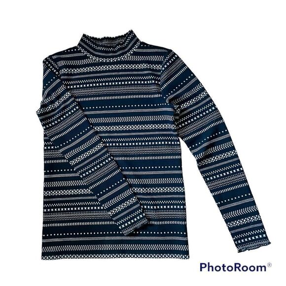 New with tags, LOFT mock neck long sleeve top. Black with metallic silver thread. Perfect transition to Fall piece.