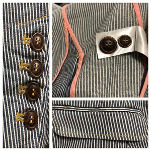 L.O.G.G. By H&M Women's Navy & White Striped Notch Collar Fitted Blazer