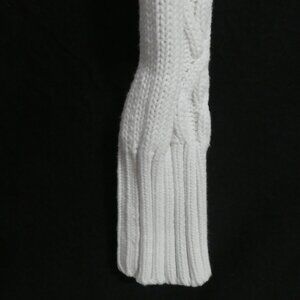 Stay cozy and stylish with this elegant ivory sweater featuring a sophisticated cable knit pattern