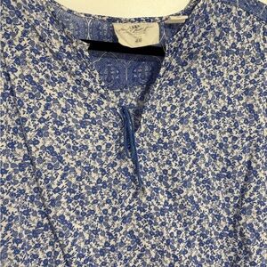 L.O.G.G. H&M Blue Floral Tunic Long Sleeve Shirt Top Women's Size Large XL 12