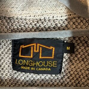 LOGHOUSE Sz M 100% Wool Cardigan Point Lapel Button Closure Pockets Side List Made in Canada. Cozy and warm. Cottage core. Cabin core.