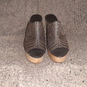 LOLA CRUZ-Cork Platform-Brown Leather/Mini Studded Clogs-Boho-Sz 39-Near Mint