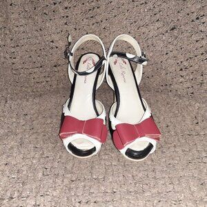The Lola Ramona Angie P Sandals are a stylish pair of high-heeled strappy sandals with a retro Rockabilly design.
