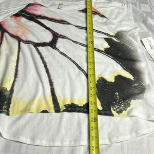 LOLE BEV TOP , graphic tee shirt , boxy , short raglan sleeves, hi low ,abstract