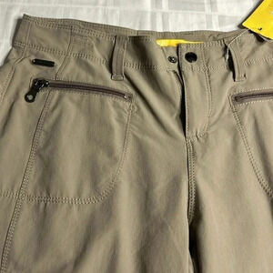 LOLE Bermuda Tokyo tan walking shorts . Metal logo embellishment,zip pockets