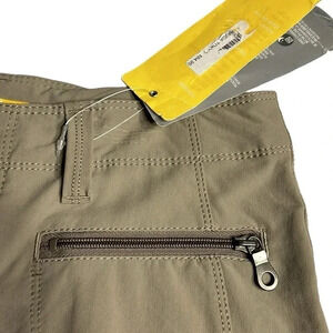 LOLE Bermuda Tokyo tan walking shorts . Metal logo embellishment,zip pockets