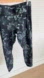 Lole Burst ankle leggings. Open side pocket plus zipper pocket. Sage green and black abstract pattern. Mesh material behind knees. Gusset. 71% nylon/ 29% elastane. Mesh at back of legs is 85% nylon/15% elastane.