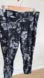 Lole Burst ankle leggings. Open side pocket plus zipper pocket. Black and white abstract pattern. Mesh material behind knees. Gusset. 71% nylon/ 29% elastane. Mesh at back of legs is 85% nylon/15% elastane.