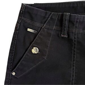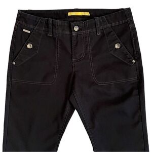 Lole hiking trail capri pants with zip and button closure. Front button closure pockets and back pockets.