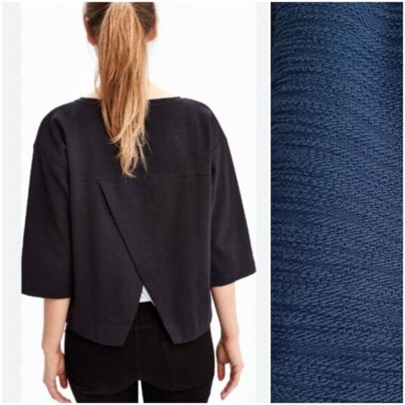 LOLE Mabley Boxy Sweatshirt Split Back Crewneck Textured Top Navy Blue Sz M
