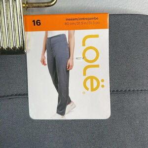 LOLE NWT Travel Pants Grey Elasticized Waist Zippered Pockets Straight Taper 16
