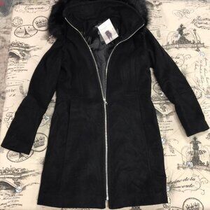 LONDON FOG COLLECTION Faux Fur-Trimmed Wool-Blend Jacket