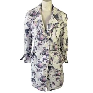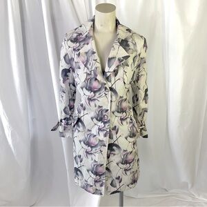 LONDON FOG FLORAL TRENCH COAT SINGLE BREAST LONG COAT GRAPHIC PRINT FLOWERS XS