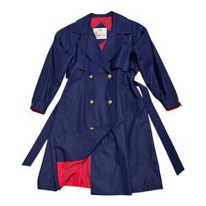 LONDON FOG TOWNE Vintage 90s Retro Blue Business Casual Trench Coat