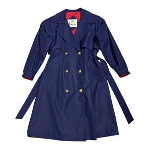 LONDON FOG TOWNE Vintage 90s Retro Blue Business Casual Trench Coat Womens 8