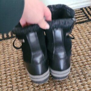 LONDON FOG Women's Waterproof Black Grey Suede Knit Lace Up Ankle Winter Boots 6
