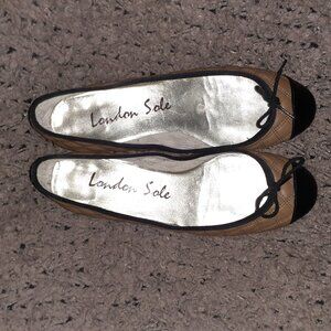 LONDON SOLE-Tan Quilted Leather-Black Patent Leather Cap Toe-Sz 38-Excellent