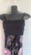 Top is black, print is a leaf design colours are purple/black/brown and white