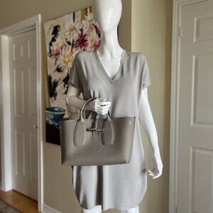 LONGCHAMP Medium Roseau Leather Top Handle Bag - Turtle Dove Grey - Authentic