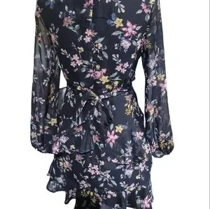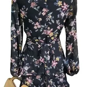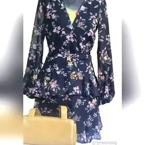 THIS IS AN ABOVE THE KNEE FLARED SKIRT, SHEER SLEEVES DRESS. NEW WITH TAGS