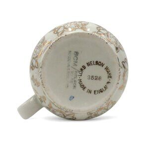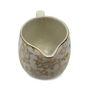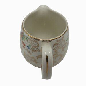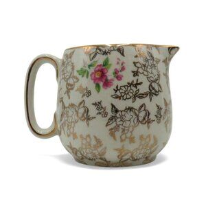 This charming creamer pitcher from Lord Nelson Ware boasts elegant floral patterns accented with intricate gold detailing.