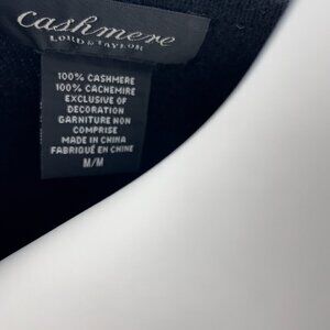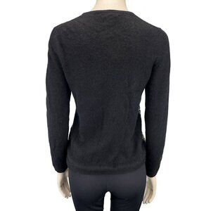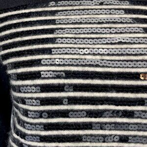 LORD & TAYLOR 100% CASHMERE Stripes Sequins Crew Neck Black Sweater sz Small