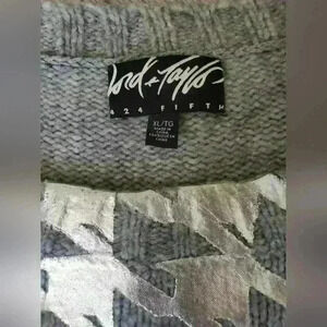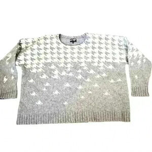 LORD & TAYLOR 424 5TH wool grey sweater with silver houndstooth. Size XL