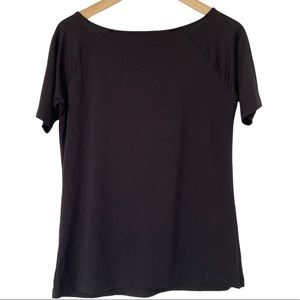 LORD & TAYLOR BLACK SHORT SLEEVE TSHIRT WITH TWIST DETAIL AT NECKLINE, MEDIUM