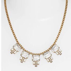 Handcrafted in Rhode Island, this striking collar necklace is made with an edgy box chain and vintage-inspired drops of faceted crystals.