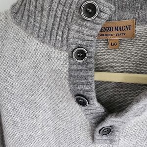 LORENZO Magni Wool Blend Button Neck Italian Knit pullover L