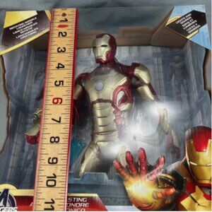 Huge Lot includes all shown: Action Figure from "Iron Man 3" with Missile Launch, Lights, Sound + Coin Bank+Stickers+2 six inch Figures plus an unbranded mini.