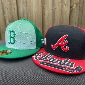 LOT OF 2 Vintage Embroidered MLB Boston Red Sox Atlanta Baseball Cap Hat New Era