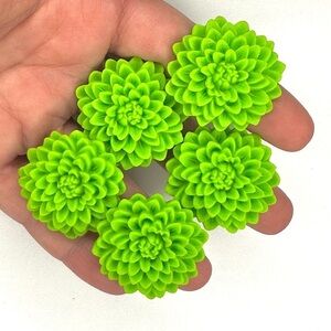 Lot of 5 lime green resin adjustable chrysanthemum flower rings. Flower measures 35mm diameter. Lot sold as is. Also available in 11 different colours. Check my closet for more and collect them all. Bundle to save!