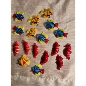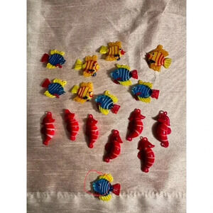 LOT Of 17 Vintage Mini Hand Blown Glass Art Fish And Seahorse Figurines 1” is a stunning collection of small, multicolored figurines that will add a touch of artistry to any space. Each figurine is carefully crafted from glossy glass using a hand-blown technique, making them unique and original pieces. The fish and seahorse designs bring a nautical theme to your decor, perfect for collectors or those looking to enhance their space with a touch of whimsy. With these unboxed treasures, you can create a charming display that showcases the beauty of handmade art. They are so cute! Can be used for floating in aquariums or making mobiles or simply for decor.