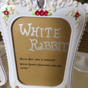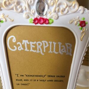 Double-sided, containing Alice in Wonderland character phrases and poetry: Mad Hatter, March Hare, White Rabbit, Caterpillar, Alice, Jabberwocky,