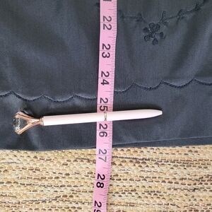 This black satin slip has beautiful embroidery.